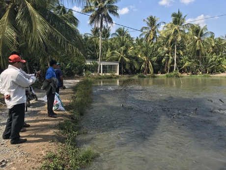 | Mô hình ương, cung cấp con giống và nuôi cá lóc thương phẩm theo chuỗi khép kín của nông dân ở Ấp 4 (xã Trung Nghĩa). |