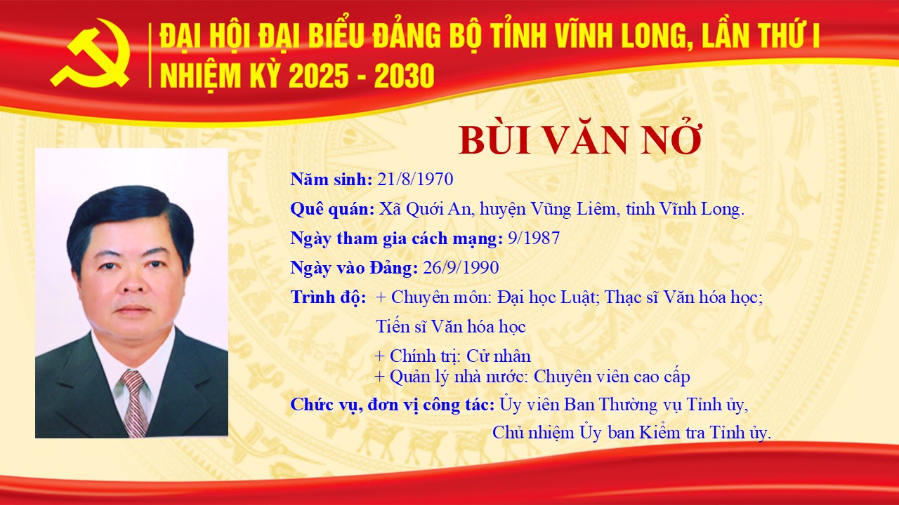 BAN CHẤP HÀNH ĐẢNG BỘ TỈNH VĨNH LONG LẦN THỨ I, NHIỆM KỲ 2025- 2030