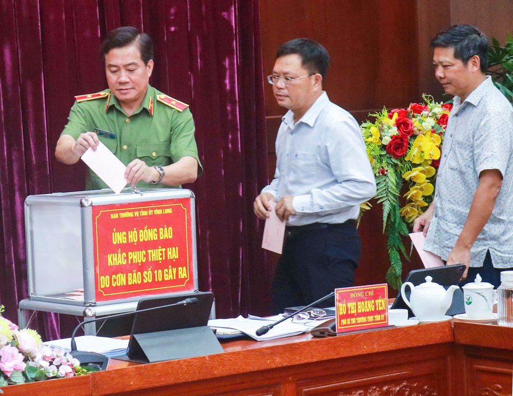Ngày 13/10, Ban Thường vụ Tỉnh ủy Vĩnh Long tổ chức ủng hộ đồng bào các tỉnh miền Bắc khắc phục thiệt hại do bão lũ gây ra. Tham dự có đồng chí Trần Văn Lâu - Bí thư Tỉnh ủy; các đồng chí Phó Bí thư Tỉnh ủy cùng các đồng chí Ủy viên Ban Thường vụ Tỉnh ủy.