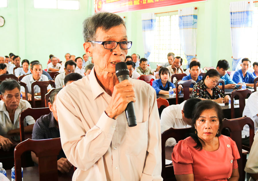 | Cử tri xã Hưng Khánh Trung phát biểu ý kiến tại buổi tiếp xúc cử tri. |