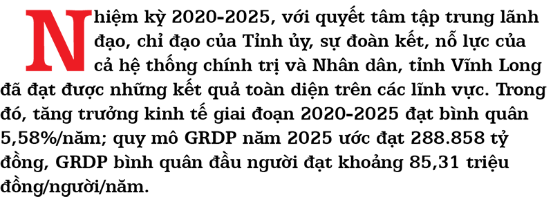 Giá trị công nghiệp tăng bình quân 10 - 15%/năm. Tỉnh Vĩnh Long (mới) hiện đang vận hành thương mại tổng công suất 5.416 MW điện, trong đó có 918MW từ năng lượng tái tạo, đạt tổng sản lượng gần 30 tỷ kWh/năm, tạo ra giá trị tương đương 24.300 tỷ đồng/năm.
