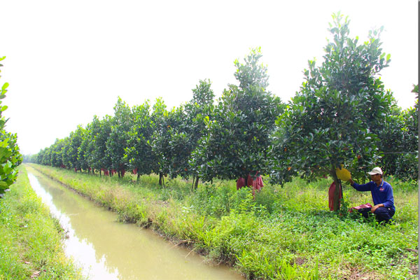 | Ngành chức năng khuyến cáo nông dân thăm vườn thường xuyên, theo dõi tình hình mưa lũ và triều cường để có giải pháp khắc phục kịp thời. |