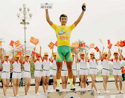 | Tay đua Nguyễn Thành Tâm (Gạo hạt ngọc trời An Giang) tiếp tục giành áo vàng. Ảnh: DƯ HẢI |