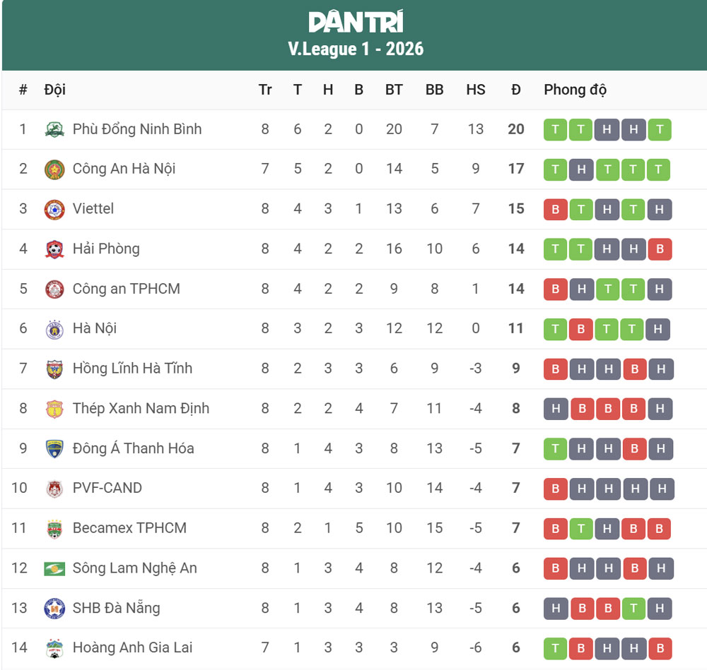 Bảo toàn được chiến thắng 1-0 trước CLB CA TPHCM, CLB CAHN bám sát đội đầu bảng Ninh Bình. CLB CAHN có 17 điểm, xếp thứ hai trên bảng xếp hạng LPBank V-League 2025-2026, kém đội đầu bảng Ninh Bình 3 điểm.