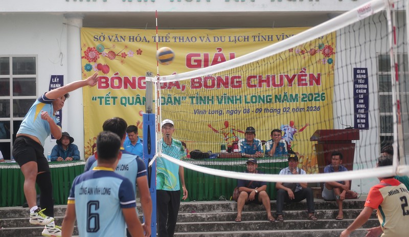 | Các trận đấu diễn ra sôi nổi tạo không khí vui tươi, phấn khởi dịp Tết Quân dân. |