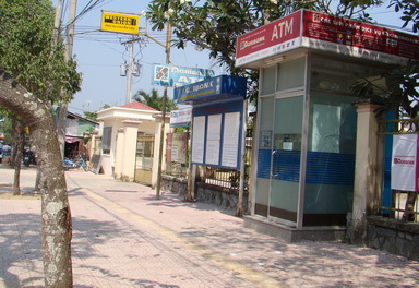 Một điểm đặt máy ATM tại thị trấn Vũng Liêm, nhưng quá xa so với các GV ở Hựu Thành và 2 xã thuộc cù lao Dài. Ảnh: LÝ AN