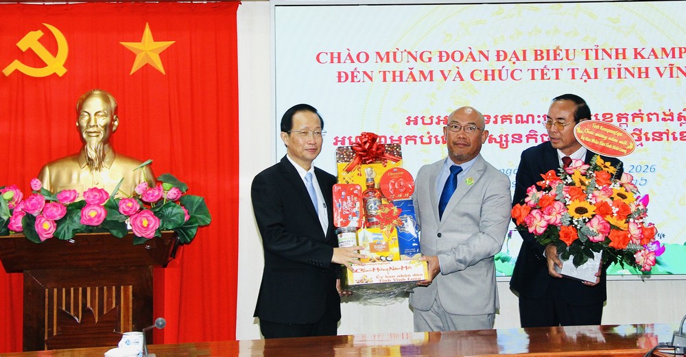 Chiều 6/2, đoàn đại biểu tỉnh Kampong Speu (Vương quốc Campuchia) do Phó Tỉnh trưởng Toch Polyva làm trưởng đoàn đã đến thăm và chúc Tết tại tỉnh Vĩnh Long. Đồng chí Nguyễn Trúc Sơn– Ủy viên Ban Thường vụ Tỉnh ủy, Phó Chủ tịch UBND tỉnh tiếp đoàn.
