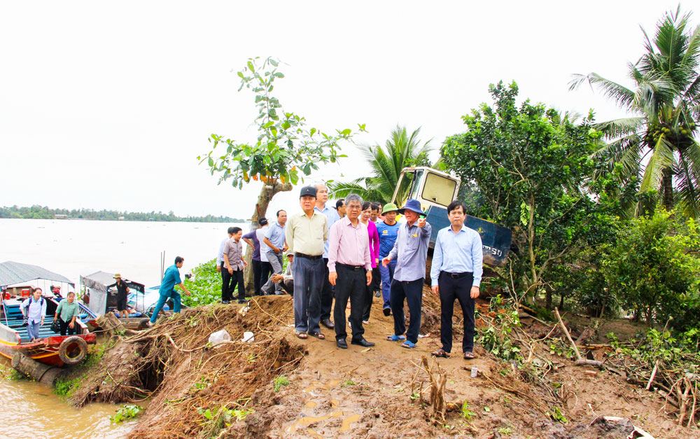 Ngày 26/10, Phó Chủ tịch UBND tỉnh- Châu Văn Hòa cùng đoàn công tác đã đến khảo sát tình hình sạt lở tại cồn Thanh Long và một số điểm sạt lở trên địa bàn xã Quới Thiện.