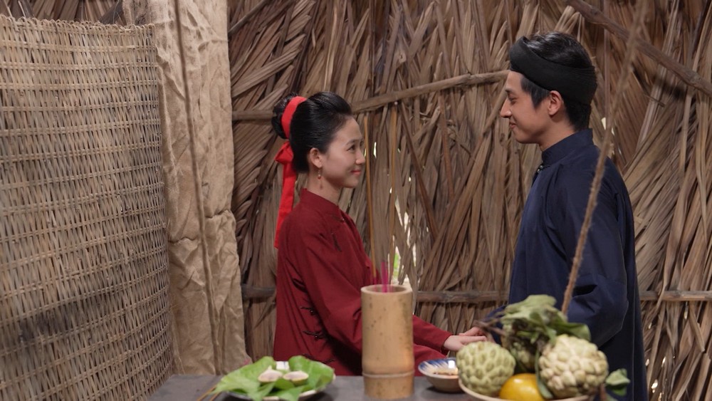 Từ đây, cả hai cùng làm lụng, ngày một gắn bó, tình cảm cũng âm thầm nảy nở. Nhưng rồi sự xuất hiện của nàng tiên Út khiến phú ông để ý. Hắn đến toan gạ gẫm, buông lời xúc xiểm, nhưng nàng tức giận đã buột miệng nói mình là vợ của Tuất để tránh bị quấy nhiễu.