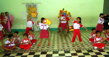 Các bé chăm chỉ luyện tập chuẩn bị cho đêm văn nghệ vui Trung thu.