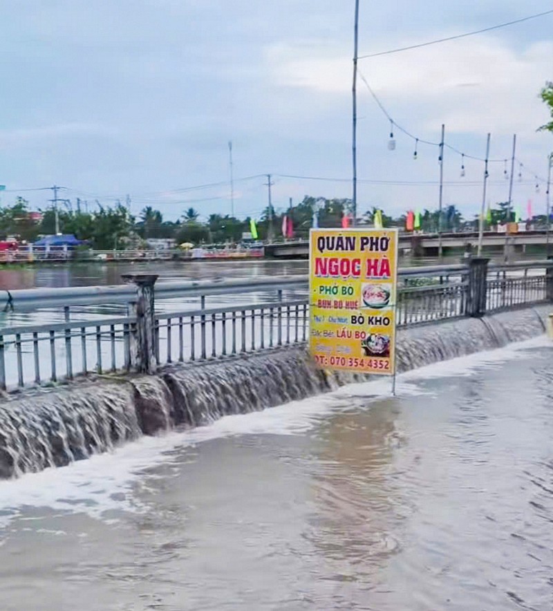 Kỳ triều cường vượt mức lịch sử từ ngày 7-24/10/2025 đã gây ngập nhiều khu vực trên địa bàn tỉnh, gây tràn, sạt lở nhiều tuyến đê bao, ngập nhiều vườn cây ăn trái, ảnh hưởng nghiêm trọng đến sản xuất, đời sống, sinh hoạt của người dân.