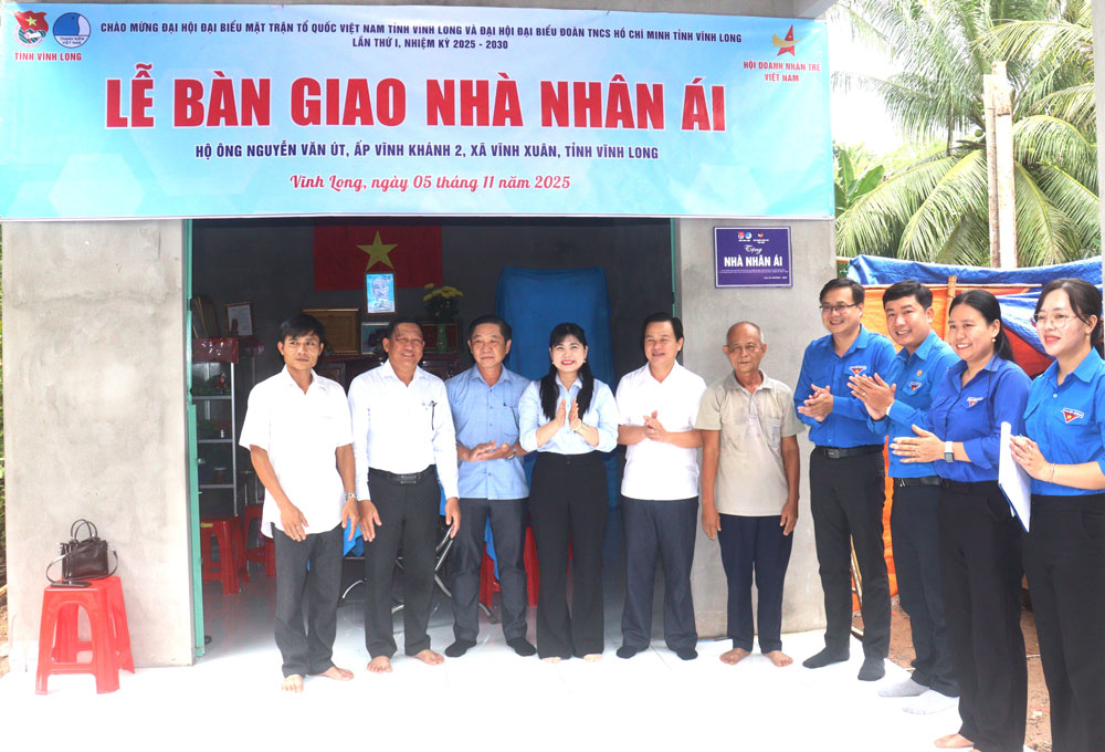 Ngày 5/11, Ban Thường vụ Tỉnh Đoàn Vĩnh Long tổ chức lễ bàn giao 2 nhà nhân ái cho gia đình ông Nguyễn Văn Út (ấp Vĩnh Khánh 2, xã Vĩnh Xuân) và gia đình bà Thạch Thị Sanh (ấp Vĩnh Hòa, xã Vĩnh Xuân).