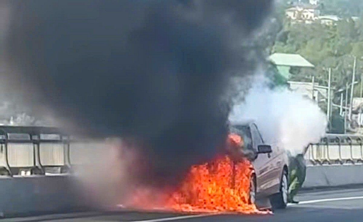 Chiều 2/12, một chiếc ô tô 4 chỗ màu đỏ mang biển số tỉnh Đồng Tháp bất ngờ bốc cháy dữ dội ở phần đầu khi đang lưu thông trên cầu Rạch Miễu, hướng từ Đồng Tháp đi Vĩnh Long.